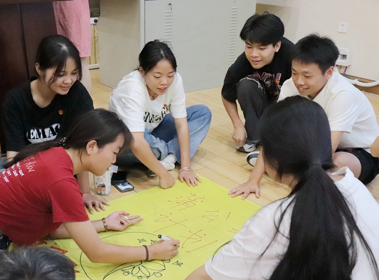 在團(tuán)隊(duì)建設(shè)活動(dòng)中,青馬班學(xué)員們隨機(jī)分成六個(gè)小組,互不認(rèn)識(shí)的小組成員迅速行動(dòng)起來,推選小組長(zhǎng),并團(tuán)結(jié)協(xié)作,集思廣益,短時(shí)間內(nèi)就想好了小組的隊(duì)名、隊(duì)歌、團(tuán)隊(duì)口號(hào)等。在小組展示的過程中,各個(gè)小組發(fā)揮自身優(yōu)勢(shì),展示了別具特色的團(tuán)隊(duì)文化。