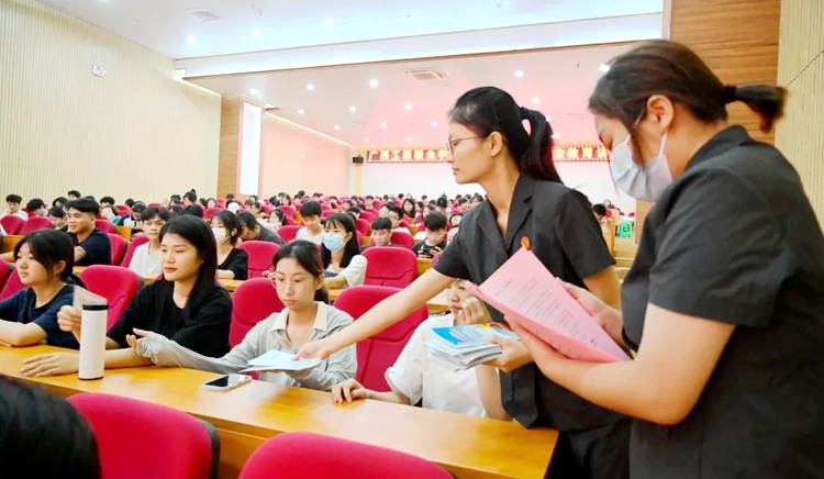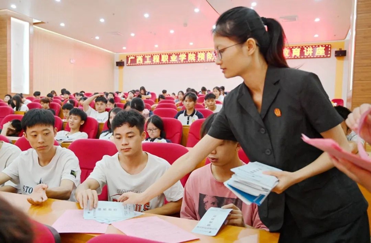 為切實做好校園安全工作,進一步提高全校師生防范電信詐騙意識,提高學生的防詐能力,最大限度預防和減少電信網(wǎng)絡(luò)詐騙案件的發(fā)生,6月15日,我校邀請平果市人民法院陳姿羽法官助理來校作預防電信詐騙專題講座。各二級學院院長、副院長,黨支部書記、副書記,學生科科長、輔導員、班主任,學生代表等參加了講座。