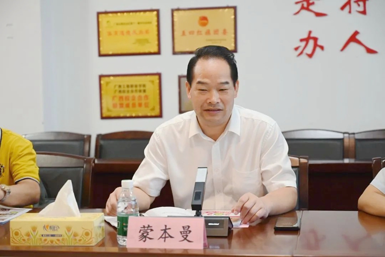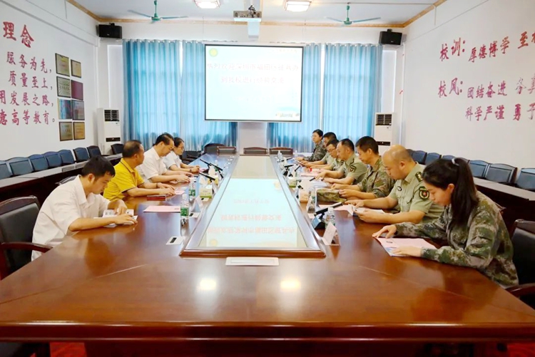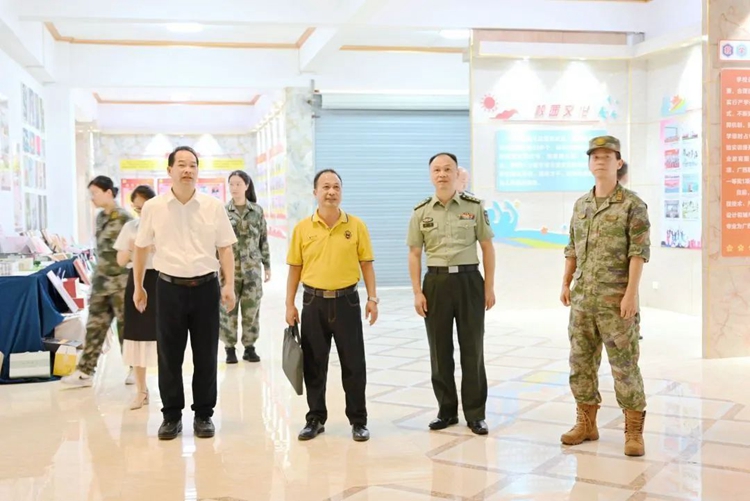 為進一步加強學生的國防教育,培養(yǎng)學生熱愛祖國、熱愛人民軍隊的真摯情感,2023年7月7日,深圳市福田區(qū)人武部政委趙華、平果市人武部政委汪曉明一行7人來我校調研指導征兵工作。學校黨委書記蒙本曼、董事長李益、學生工作處副處長李麗詩、征兵辦公室負責人陳國昇陪同調研并參加征兵工作經驗交流會。交流會由學生工作處副處長李麗詩主持。