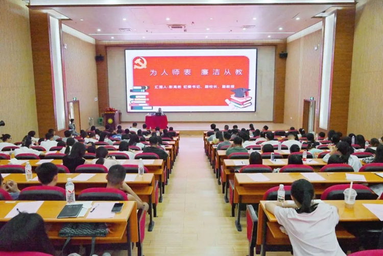 紀委書記、副校長彭高彬作題為《為人師表 廉潔從教》的專題培訓,他主要圍繞清廉學校建設的工作要求、學校紀檢監(jiān)察黨紀法規(guī)的相關要求、校內外典型案例給予的警示反思、新任教師廉潔從教的基本要求等方面進行了深入淺出的培訓教育,警示新教師要知敬畏、存戒懼、守底線,要不斷提高拒腐防變能力,堅定立德樹人的職業(yè)信仰,增強為人師表、廉潔從教的信心和決心,為學校內涵式高質量發(fā)展奠定堅實基礎。