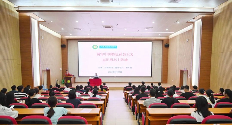 開班典禮結束后,黨委書記、督導專員蒙本曼,黨委副書記黃秋霞,紀委書記、副校長彭高彬,副校長蔣茂麗,副校長吳先夏等校級領導以及相關職能部門負責人、骨干教師代表分別作了專題培訓,培訓內容豐富,涉及意識形態(tài)工作、師德師風建設、教師隊伍建設、行政管理、學生工作、教育教學工作等方面。