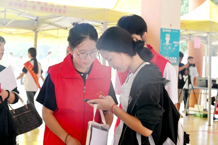 學(xué)校黨政領(lǐng)導(dǎo)班子親臨迎新現(xiàn)場(chǎng)指導(dǎo)工作,了解迎新工作進(jìn)展,看望2023級(jí)新生和家長(zhǎng),慰問(wèn)迎新一線(xiàn)工作人員和師生志愿者。全體迎新工作組成員及學(xué)生志愿者團(tuán)結(jié)合作,全心投入迎新工作,他們用熱情的服務(wù)、親切的笑容迎接著每一位新生,耐心地為新生答疑解惑,幫助新生盡快了解和適應(yīng)學(xué)校環(huán)境,為2023級(jí)新同學(xué)及家長(zhǎng)提供了優(yōu)質(zhì)高效的服務(wù)。