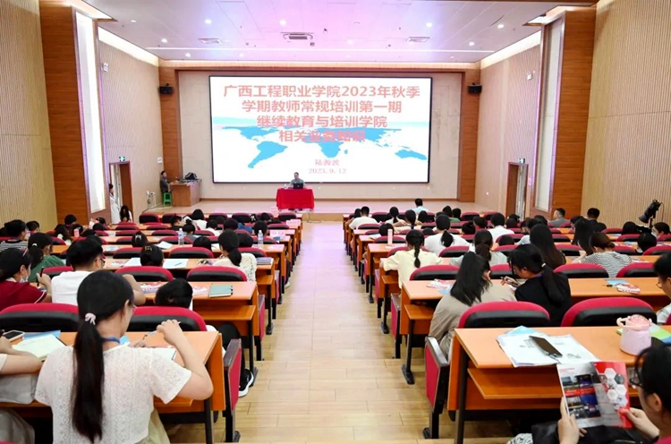 9月12日下午,學(xué)校第一期教師常規(guī)培訓(xùn)在圖文信息大樓一樓報告廳舉行,繼續(xù)教育學(xué)院陸源波科長作技能證、基礎(chǔ)證、學(xué)歷提升等相關(guān)知識培訓(xùn),全體教師參加培訓(xùn)。