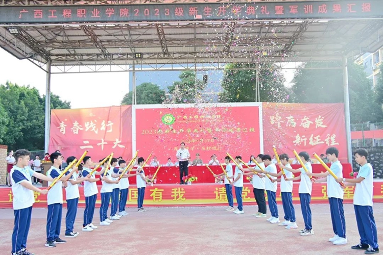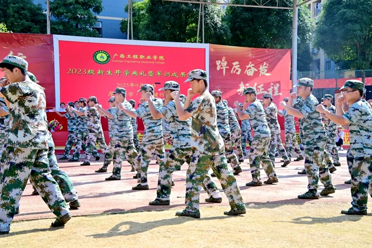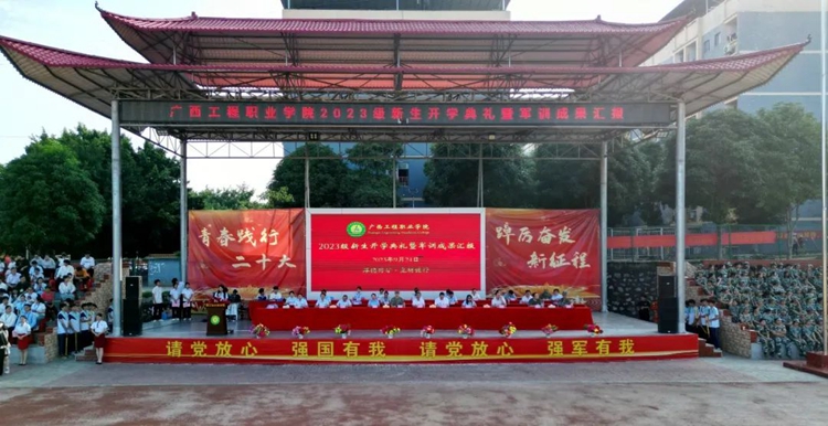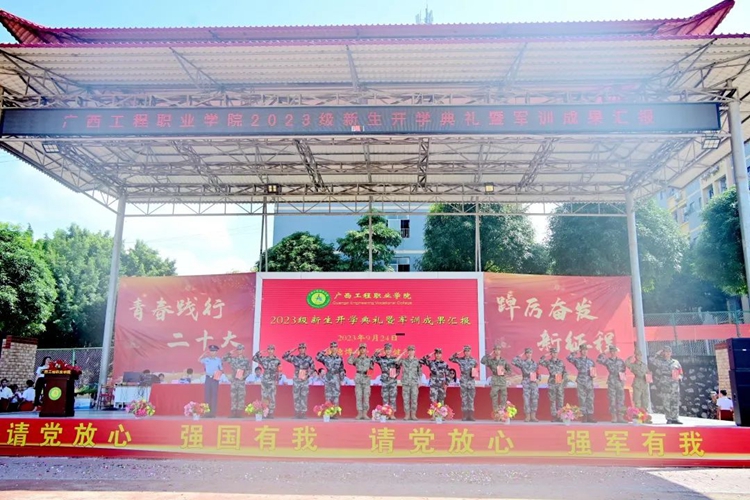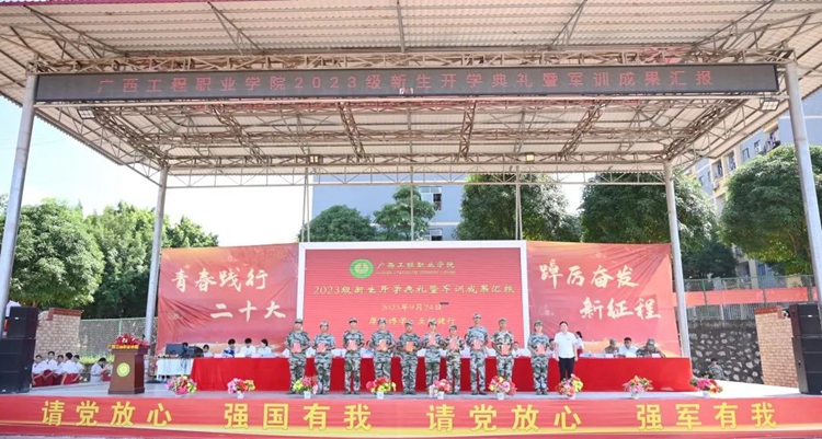 軍訓(xùn)鑄魂,步伐鏗鏘,軍姿颯爽,青春飛揚(yáng)。9月24日上午廣西工程職業(yè)學(xué)院在田徑運(yùn)動(dòng)場(chǎng)舉行2023級(jí)新生開學(xué)典禮暨軍訓(xùn)成果匯報(bào)。