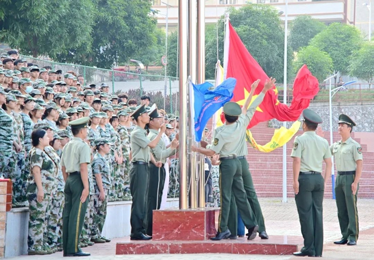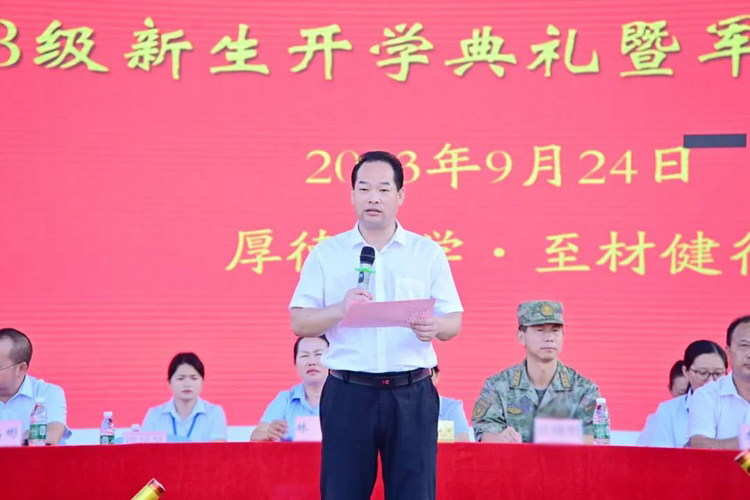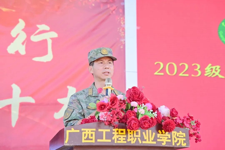 平果市人民武裝部領(lǐng)導(dǎo),學(xué)校董事長(zhǎng)李益、副董事長(zhǎng)林艷,黨委書記、督導(dǎo)專員蒙本曼,校長(zhǎng)羅艷妮,紀(jì)委書記、副校長(zhǎng)彭高彬,副校長(zhǎng)黃德偉、蔣茂麗,校長(zhǎng)助理李明澤、梁善雅等校領(lǐng)導(dǎo)班子成員出席大會(huì);學(xué)校相關(guān)職能部門負(fù)責(zé)人、黨支部副書記、分團(tuán)委書記、辦公室主任、2023級(jí)新生輔導(dǎo)員及2023級(jí)全體學(xué)生參加大會(huì)。大會(huì)由校黨委副書記黃秋霞主持。
