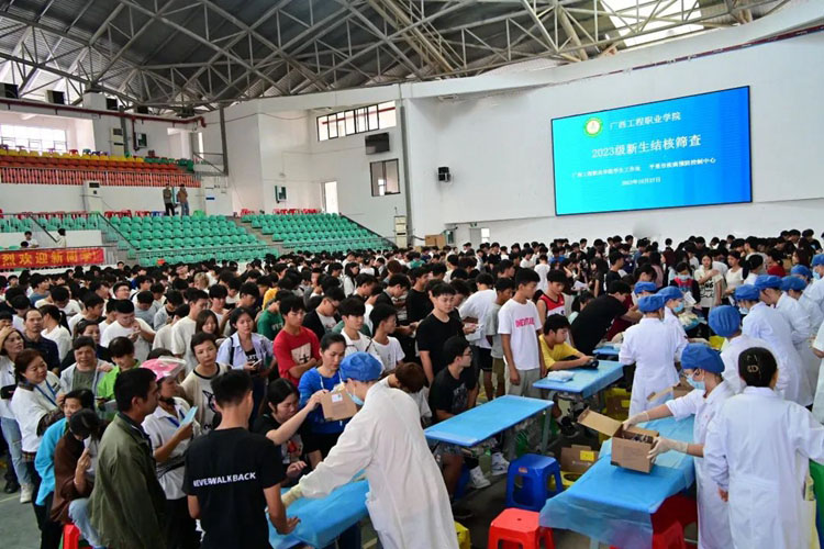 結(jié)核病是影響青少年身體健康的重大傳染病之一,為有效防范校園結(jié)核病疫情的傳播和流行,進一步加強新生入學結(jié)核病防控工作,切實保障廣大師生身體健康與生命安全,營造健康的校園環(huán)境。根據(jù)國家教育部衛(wèi)生健康委文件要求,2023年10月27日,我校在體育館開展新生入學結(jié)核病篩查工作。