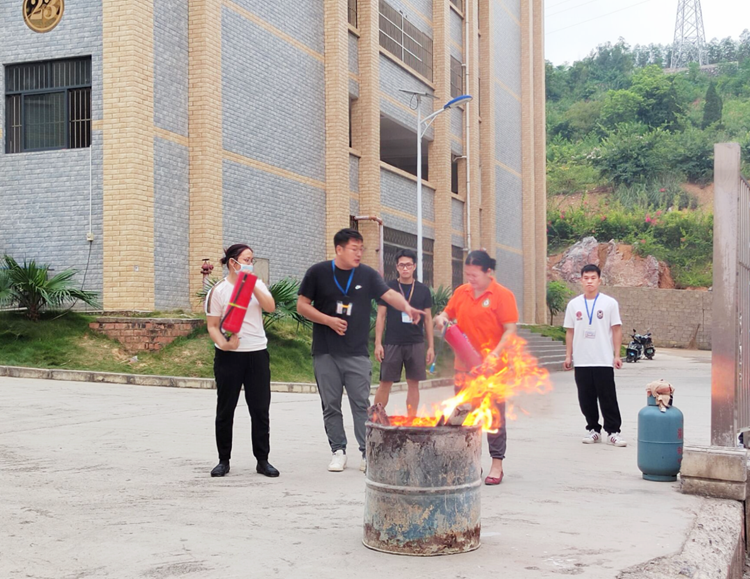 培訓(xùn)會結(jié)束后,在保衛(wèi)處王冬冬副處長的帶領(lǐng)下,全體餐飲從業(yè)人員及主管參加了消防滅火演練。