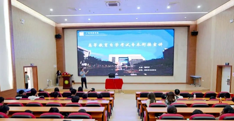 交流會(huì)后,廣西財(cái)經(jīng)學(xué)院繼續(xù)教育學(xué)院饒學(xué)開(kāi)副院長(zhǎng)、王曉陽(yáng)副主任還分別為學(xué)校各二級(jí)學(xué)院學(xué)生代表進(jìn)行了專本銜接報(bào)讀宣講。