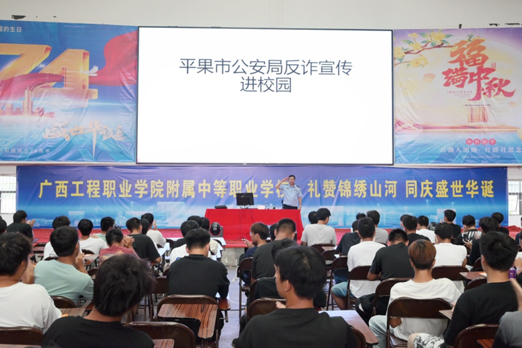 平果市刑偵大隊大隊長覃源港作《防電信網(wǎng)絡詐騙》專題講座