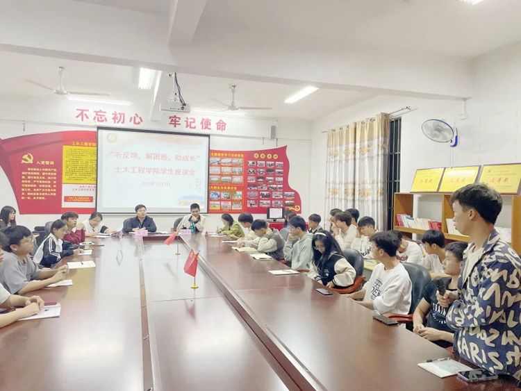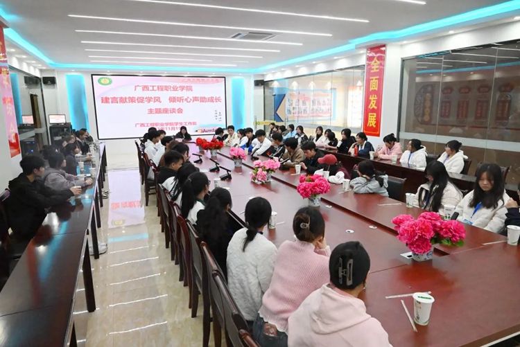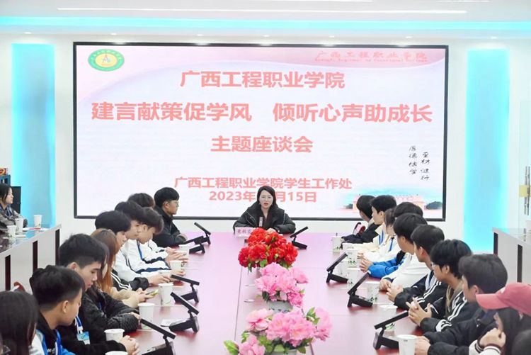 為學(xué)習(xí)貫徹黨的二十大精神,貫徹落實習(xí)近平總書記關(guān)于教育的重要論述,進一步提升校園建設(shè)和管理水平,激勵和引導(dǎo)工程學(xué)子以更好的精神面貌和熱情投身學(xué)習(xí)生活,發(fā)揚主人翁精神,共謀學(xué)校發(fā)展,2023年11月2日-11月15日,學(xué)校組織開展“建言獻策促學(xué)風(fēng) 傾聽心聲助成長”主題學(xué)生座談會,多方位征求學(xué)生的建議和意見,傾聽學(xué)生的心聲,更好地服務(wù)于廣大同學(xué),為學(xué)校的高質(zhì)量發(fā)展做貢獻。學(xué)校黨委副書記黃秋霞組織學(xué)生工作處及二級學(xué)院分別召開了學(xué)生座談會。