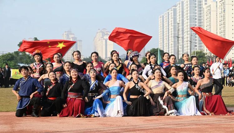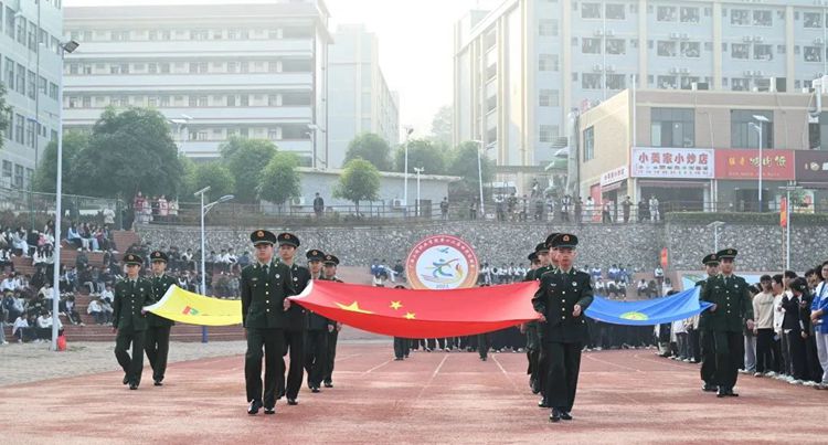 在激昂的國(guó)歌聲里,在煦日陽(yáng)光下,五星紅旗冉冉升起,全體師生莊嚴(yán)肅立,望向國(guó)旗的目光盡顯赤子之心。那在風(fēng)中飄揚(yáng)的五星紅旗,也點(diǎn)燃了運(yùn)動(dòng)健兒們的朝氣與熱情。