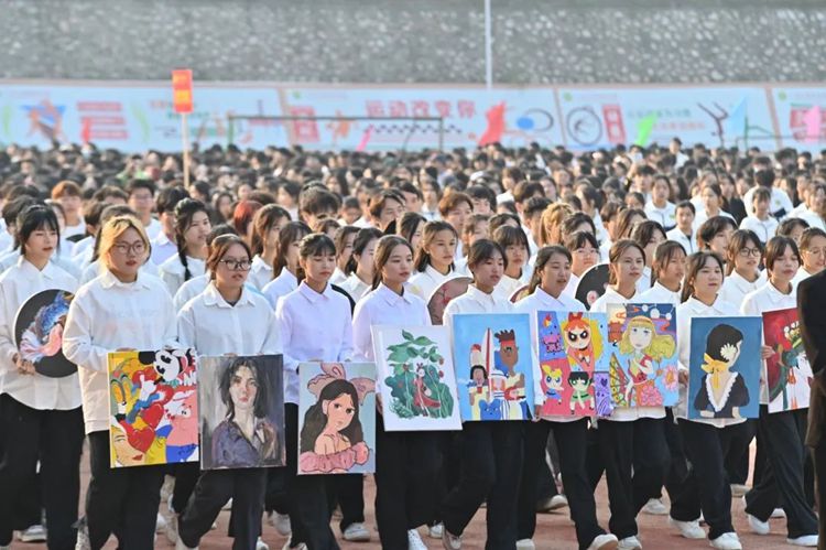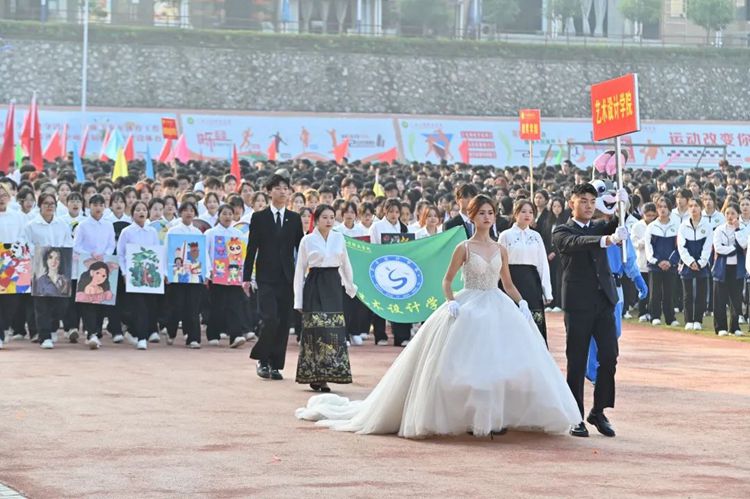 隨后,各學(xué)院方陣的創(chuàng)意表演活力四射、異彩紛呈,激昂的歌聲、動(dòng)感的音樂(lè)、靈動(dòng)的舞姿以及豪邁的口號(hào)聲交織融匯,構(gòu)成了一幅生動(dòng)的校園畫(huà)卷,傳遞了體育精神,展示了校園文化。