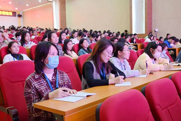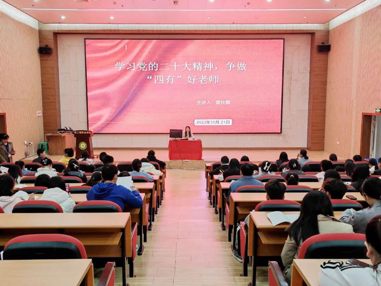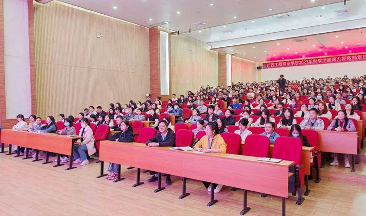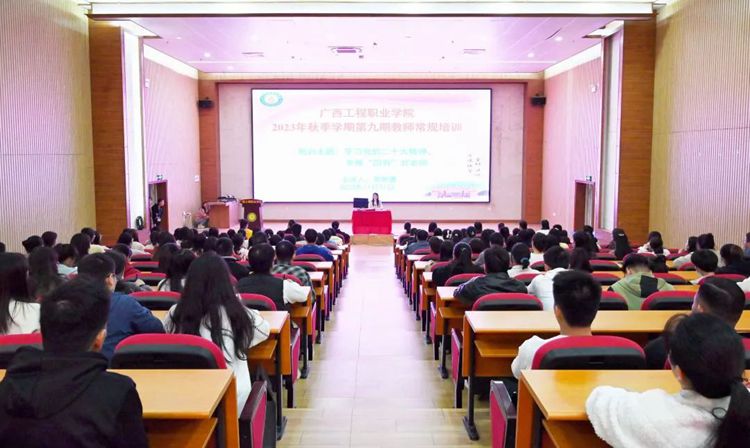 偉大的教育家雅斯貝爾斯曾說(shuō):“教育的本質(zhì)是一棵樹搖動(dòng)另一棵樹,一朵云推動(dòng)另一朵云,一個(gè)靈魂喚醒另一個(gè)靈魂。”為深入學(xué)習(xí)宣傳貫徹黨的二十大精神,加強(qiáng)學(xué)校師德師風(fēng)建設(shè),打造高素質(zhì)教師團(tuán)隊(duì),引導(dǎo)廣大教師做“有理想信念、有道德情操、有扎實(shí)學(xué)識(shí)、有仁愛之心”的“四有”好老師,2023年11月21日,廣西工程職業(yè)學(xué)院舉行2023年秋季學(xué)期第九期教師常規(guī)培訓(xùn)會(huì),黨委副書記黃秋霞作“學(xué)習(xí)黨的二十大精神,爭(zhēng)做‘四有’好老師”主題培訓(xùn)。全體教師參加了培訓(xùn)會(huì)。
