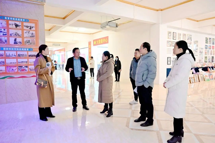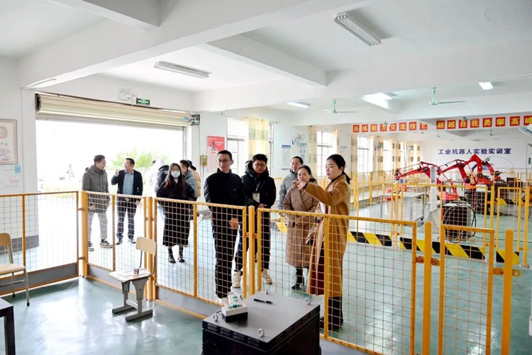 零跑汽車有限公司一行在黃德偉副校長的陪同下參觀學校辦學成果展及汽車與機電學院實驗實訓室。
