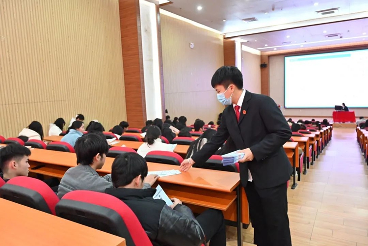 講座中,法官助理韋雨欣引導(dǎo)同學(xué)們深入認(rèn)識出售、出借個人手機(jī)卡、銀行卡、支付賬戶和社交賬號等行為可能涉嫌幫助信息網(wǎng)絡(luò)犯罪活動罪。她呼吁同學(xué)們高效辨別和防范電信網(wǎng)絡(luò)詐騙,堅決杜絕參與此類犯罪的行為。最后,號召同學(xué)們嚴(yán)格遵守法律法規(guī),不為了蠅頭小利而陷入“幫信”陷阱,成為騙子的“工具人”。她希望同學(xué)們能夠提高警惕性,保護(hù)自己和身邊人的財產(chǎn)安全,共同營造一個安全、公正、和諧的社會環(huán)境。