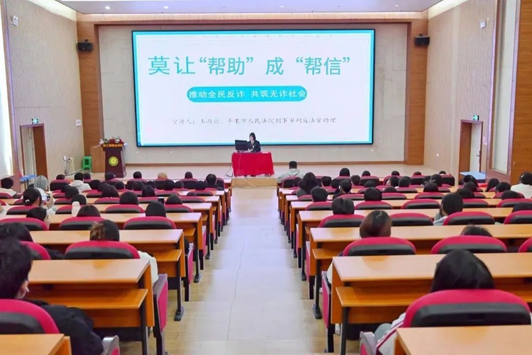 平果市人民法院刑事審判庭法官助理韋雨欣作主題為“莫讓幫助成幫信”的防范電信網(wǎng)絡(luò)詐騙普法專題講座。