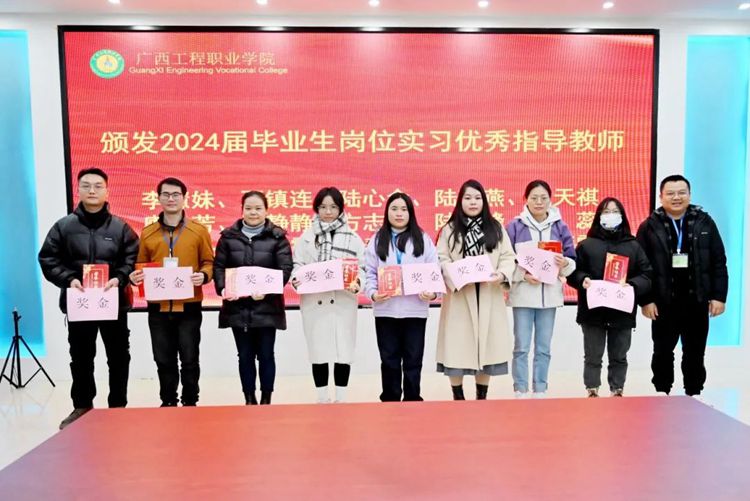 招生就業(yè)處副處長(zhǎng)岑易精、陳麗燕為2024屆畢業(yè)生崗位實(shí)習(xí)工作優(yōu)秀指導(dǎo)教師頒發(fā)榮譽(yù)證書和獎(jiǎng)金