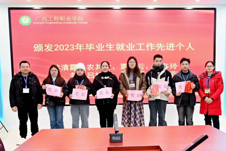 招生就業(yè)處副處長(zhǎng)岑易精、陳麗燕為2023年畢業(yè)生就業(yè)創(chuàng)業(yè)工作先進(jìn)個(gè)人頒發(fā)榮譽(yù)證書和獎(jiǎng)金