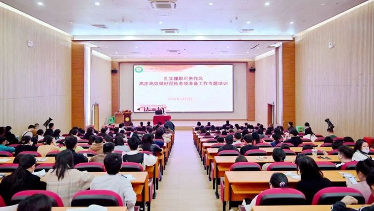 3月5日晚,學(xué)校在圖文信息大樓一樓學(xué)術(shù)報(bào)告廳召開“扎實(shí)履職盡責(zé)作風(fēng) 高質(zhì)高效做好迎檢各項(xiàng)準(zhǔn)備工作”主題培訓(xùn)會(huì),學(xué)校領(lǐng)導(dǎo)班子及全體教職工參加會(huì)議。會(huì)議由質(zhì)量管理辦公室副主任藍(lán)桂敏主持。
