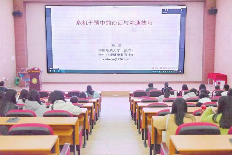 本次培訓(xùn)由中國(guó)地質(zhì)大學(xué)(武漢)的郭蘭教授主講。培訓(xùn)主題包含兩個(gè)部分,分別為《大學(xué)生心理危機(jī)的識(shí)別與干預(yù)》及《危機(jī)干預(yù)中的談話與溝通技巧》。