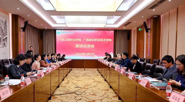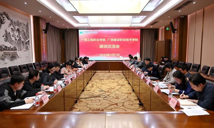 3月5日,廣西工程職業(yè)學(xué)院董事長李益,黨委書記、督導(dǎo)專員蒙本曼帶隊赴廣西建設(shè)職業(yè)技術(shù)學(xué)院參觀交流學(xué)習(xí)。廣西建設(shè)職業(yè)技術(shù)學(xué)院黨委書記劉曉紅、黨委副書記曾繁雄等一行對我校的到來表示歡迎。