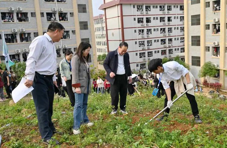 黨委書(shū)記、督導(dǎo)專員蒙本曼,黨委副書(shū)記黃秋霞等校領(lǐng)導(dǎo)帶領(lǐng)師生共同行動(dòng),開(kāi)展植樹(shù)活動(dòng),為校園增添新綠,為生態(tài)文明建設(shè)貢獻(xiàn)自己的力量。