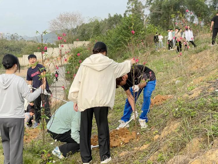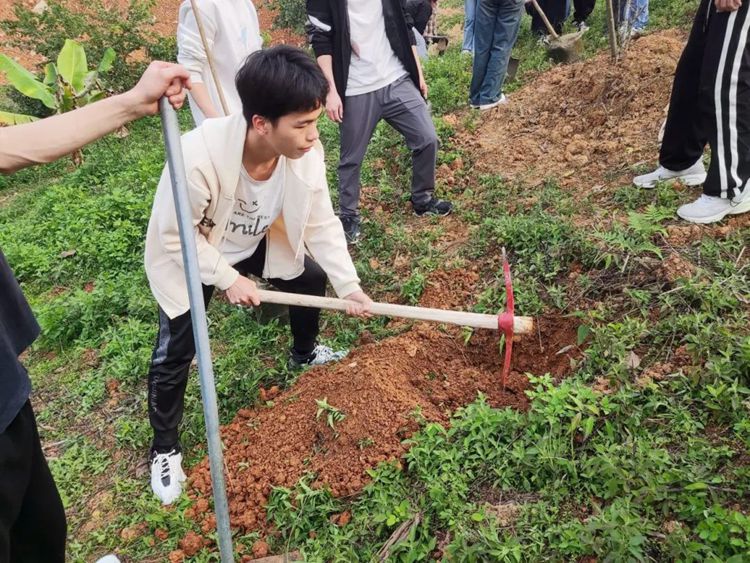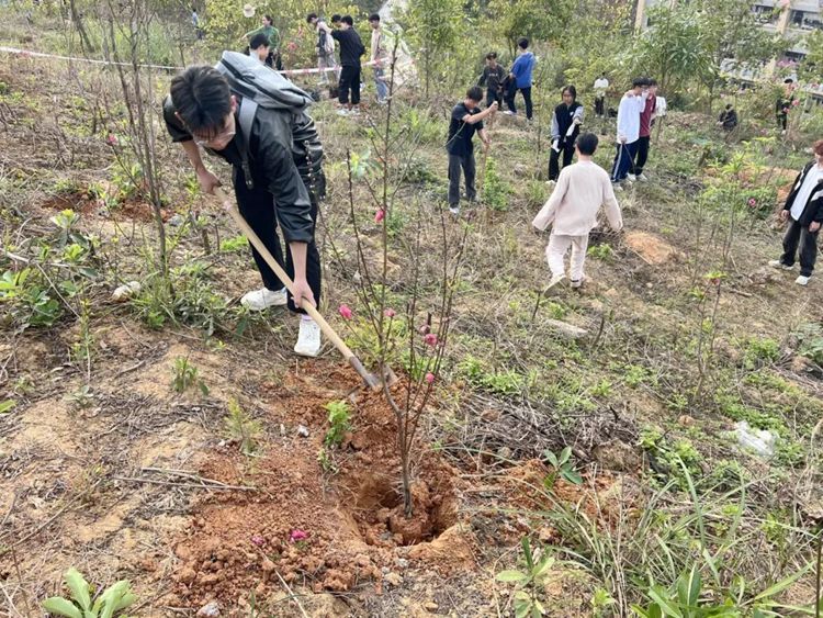 大家用心栽植,讓每一株樹(shù)苗在沃土中扎下深厚的根基,輕輕搖曳在和風(fēng)中,充滿勃勃的生機(jī)。整個(gè)場(chǎng)景生動(dòng)展示了廣工程院學(xué)子團(tuán)結(jié)協(xié)作的力量以及他們積極參與環(huán)保實(shí)踐的精神。