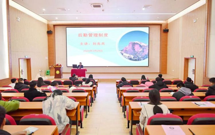 后勤管理中心主任劉兆兵作《后勤管理制度》專題培訓(xùn)。他主要圍繞教師公寓管理制度、教師公寓設(shè)施設(shè)備報(bào)修流程、智能熱水表使用方法等方面進(jìn)行培訓(xùn)。