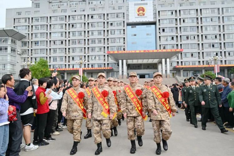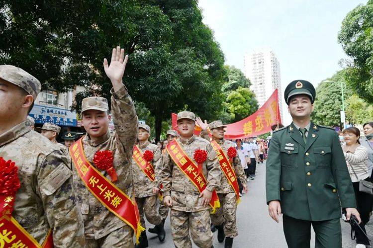 新兵們身著全新的迷彩服,胸前驕傲地佩戴著醒目的大紅花,肩上掛著榮耀的綬帶。懷揣著參軍報國的崇高理想,積極響應(yīng)號召,踴躍報名,主動應(yīng)征。通過嚴格把關(guān)、層層篩選,他們脫穎而出,成為光榮的人民子弟兵?!?/p>