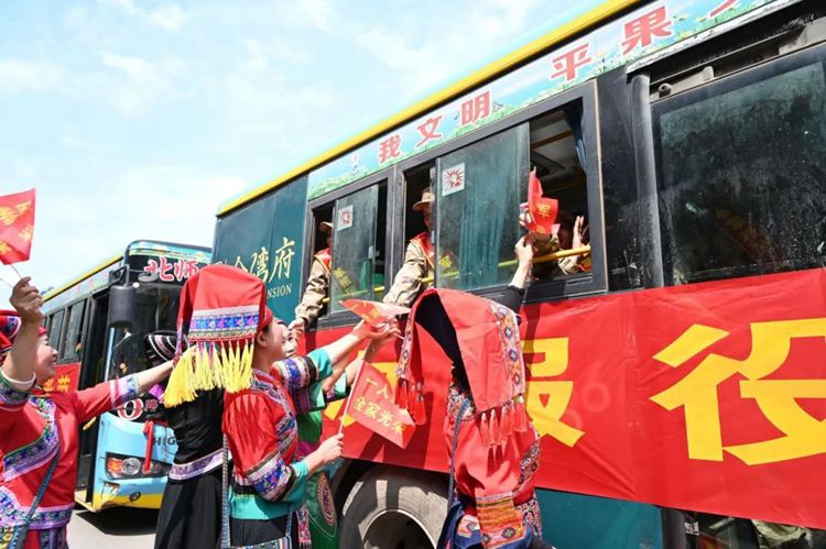 在儀仗隊的引領(lǐng)下,新兵們昂首挺胸,從政府大樓出發(fā),乘車沿著人民路、鋁城大道、龍江路、火車站、第一小學(xué)、北街、東街、百貨大樓路線進行游行,再徒步沿著中興百貨、烈士陵園、第九小學(xué)、婦幼保健院路線游行,沿線有舞獅隊、學(xué)生儀仗隊、鮮花隊、少數(shù)民族服裝隊、腰鼓隊同行,群眾駐足夾道歡送,并報以熱情歡呼聲。