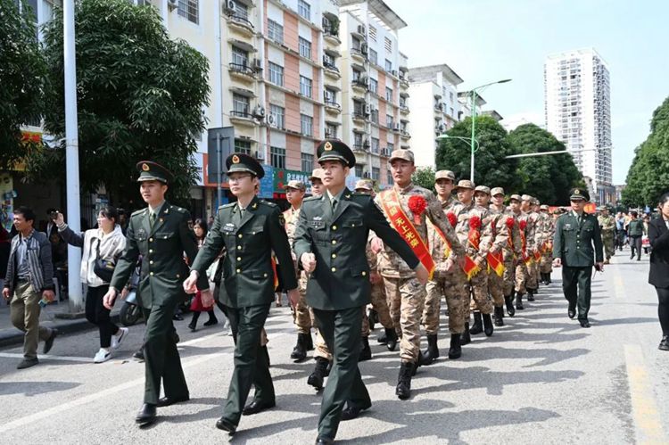 2024年3月19日上午,平果市人民政府舉行“熱血披戎裝,啟程赴軍營”歡送新兵宣傳活動,我校組織師生代表參加了此次歡送宣傳活動,熱烈慶祝平果市熱血青年光榮入伍。在本次新兵隊伍中,我校劉承驍?shù)?3名同學(xué)在平果市光榮入伍。