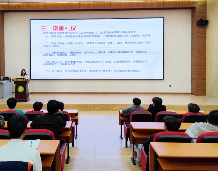 鐵道與航空學院開展大學生文明禮儀專題教育和學生干部思想教育專題培訓(xùn),鐵道與航空學院黨支部副書記宋蓉、學生科長謝小玲分別作專題教育。通過開展此次專題教育,進一步培養(yǎng)學生良好行為習慣,增強文明禮儀修養(yǎng),提高社會人際交往的必備素質(zhì),讓每個學生都能學禮儀、知禮儀、行禮儀,營造和諧文明的育人環(huán)境,建設(shè)文明校園。