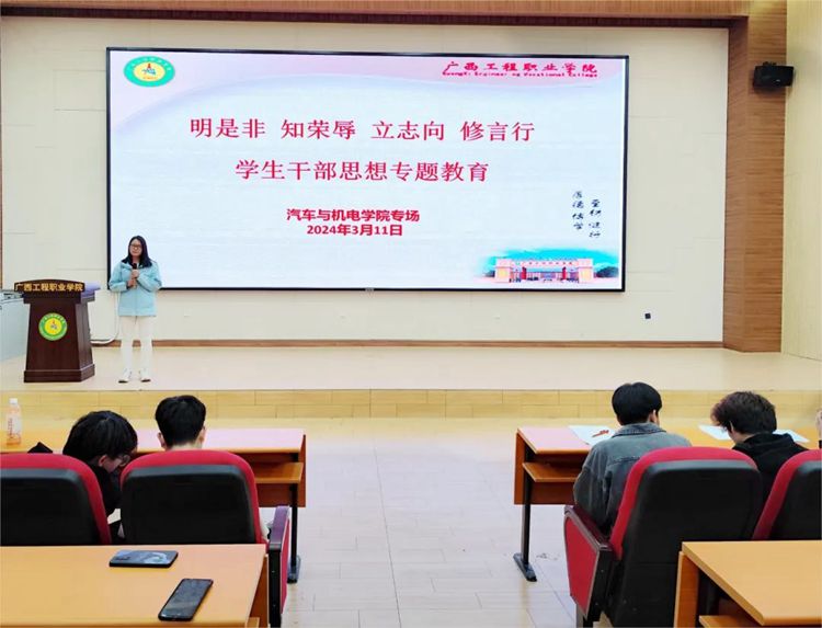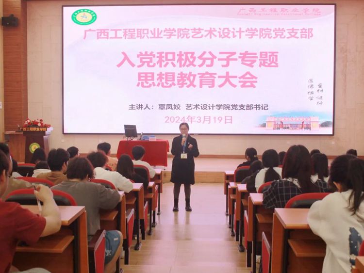 3月19日至21日,藝術(shù)設(shè)計學院開展入黨積極分子專題思想教育、文明禮儀教育和學生公寓安全知識專題教育,分別由藝術(shù)設(shè)計學院黨支部書記、院長覃鳳姣,黨支部副書記趙志輝和藍啟成老師作專題教育。