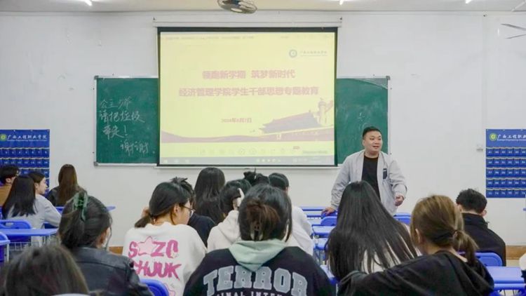 經(jīng)濟管理學院開展“領(lǐng)跑新學期,筑夢新時代,踐行雷鋒精神”的學生思想教育,旨在培養(yǎng)學生的創(chuàng)新意識、社會責任感和良好的品德素養(yǎng)。經(jīng)濟管理學院黨支部副書記潘翠萍、分團委書記李東英分別作專題教育。