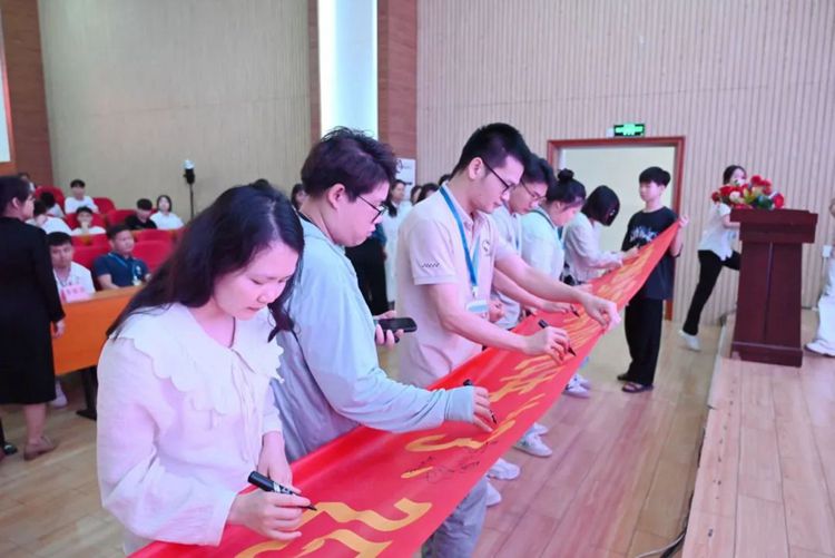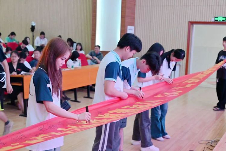 大家紛紛在廣西工程職業(yè)學(xué)院2024年“3·25”心理健康教育活動(dòng)季啟動(dòng)儀式宣傳橫幅上簽字,承諾用積極心態(tài)面對(duì)生活,做健康生活、快樂學(xué)習(xí),心里充滿陽光,積極向上的人。