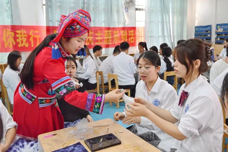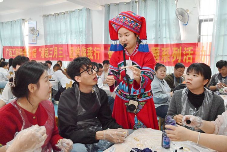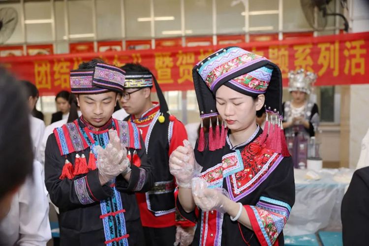 本次“廣西三月三”系列活動(dòng)以“潮起三月三,團(tuán)結(jié)你我行”為主題,開展有“扎染制作”“廣西特色美食(糯米飯、艾葉糍粑、油茶)制作”“‘廣西三月三’微黨課”“蓮鼓越歌行舞蹈”“跳竹竿舞”“山歌對(duì)唱”等6項(xiàng)獨(dú)具魅力的活動(dòng)。