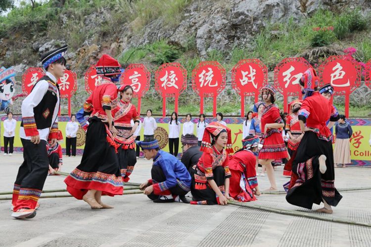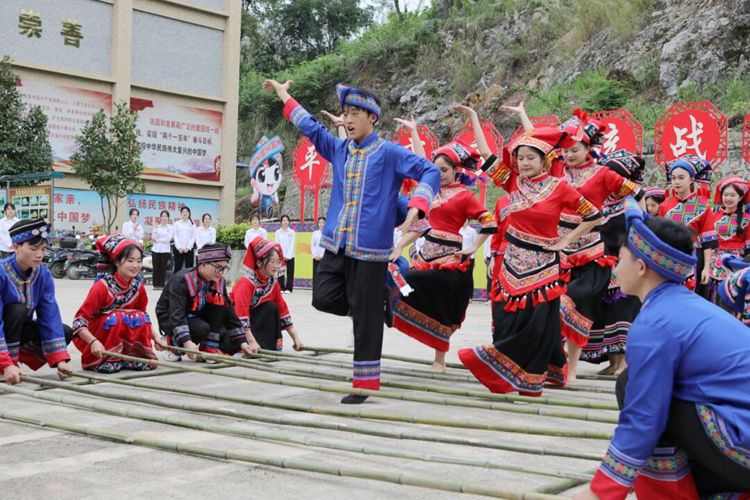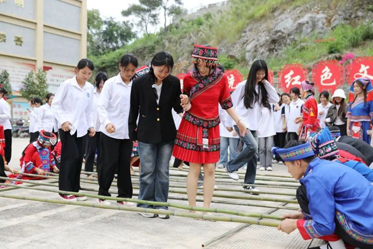 竿竿舞民族旋律,步步現(xiàn)團(tuán)結(jié)情懷。4月9日,同學(xué)們身著民族服裝,相聚在統(tǒng)戰(zhàn)紅色文化教育基地,歡快跳起了竹竿舞。紀(jì)委書記、副校長彭高彬等校領(lǐng)導(dǎo)到現(xiàn)場與師生一起共慶三月三。