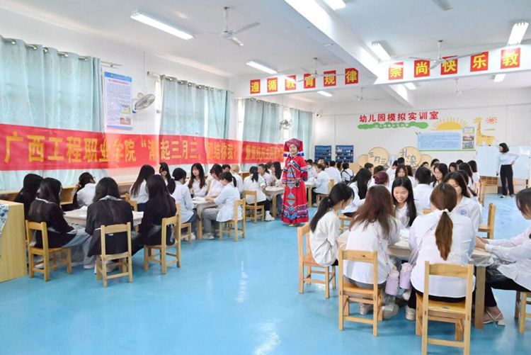 為引領(lǐng)廣大師生鑄牢中華民族共同體意識(shí),弘揚(yáng)優(yōu)秀民族文化,凝聚各民族情誼,營造民族團(tuán)結(jié)進(jìn)步的校園氛圍,豐富校園文化生活,4月8日至9日,廣西工程職業(yè)學(xué)院開展“廣西三月三”系列活動(dòng),活動(dòng)由教育學(xué)院、藝術(shù)設(shè)計(jì)學(xué)院承辦。