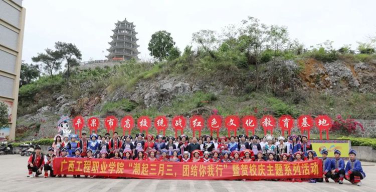 4月9日,學(xué)校師生身穿民族服飾,相聚工程塔,唱山歌,拋繡球,感受多彩民族風(fēng)情,同慶“廣西三月三”民族傳統(tǒng)節(jié)日。黨委書記、督導(dǎo)專員蒙本曼等校領(lǐng)導(dǎo)參加了活動(dòng)。