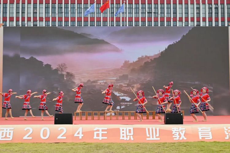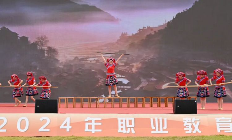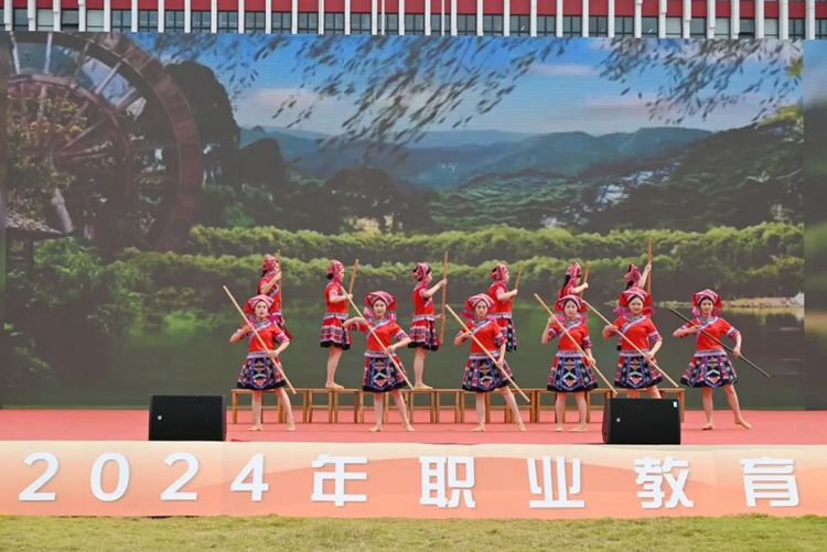 5月21日,我校帶來的民族舞蹈《薪火相傳·節(jié)節(jié)高》在“一技在手,一生無憂”主題職業(yè)教育活動周活動現(xiàn)場舞臺展演中亮相。