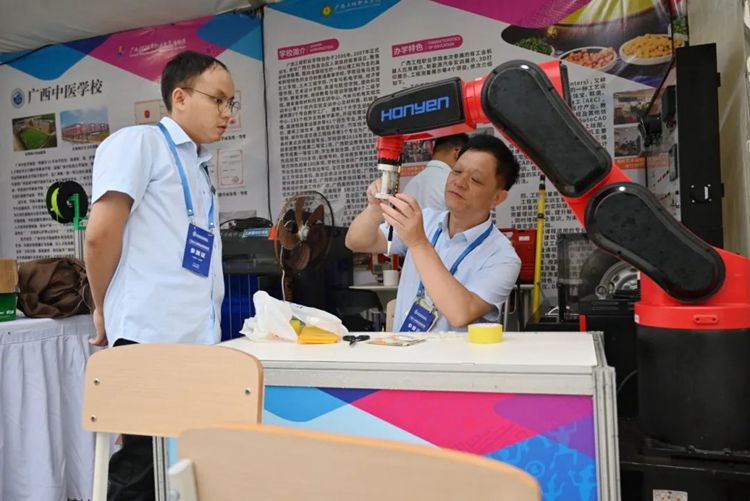 活動共設有146個展位,其中,我校展位吸引了眾多與會領導、嘉賓以及現(xiàn)場觀眾駐足觀看、咨詢和體驗,大家對我校在職業(yè)教育方面取得的成果給予了高度評價。我校將繼續(xù)加大改革創(chuàng)新力度,進一步提高職業(yè)教育質量,為廣西乃至全國的職業(yè)教育事業(yè)發(fā)展貢獻更多力量。