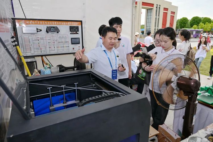 展區(qū)現(xiàn)場,教學督導室主任韋永驍副教授、汽車與機電學院副院長梁欣欣及土木工程學院潘新康、藝術與設計學院郁長松、汽車與機電學院韋遠安等教師為觀眾詳細介紹學校的特色展示項目,觀眾深受吸引,忍不住親身體驗。