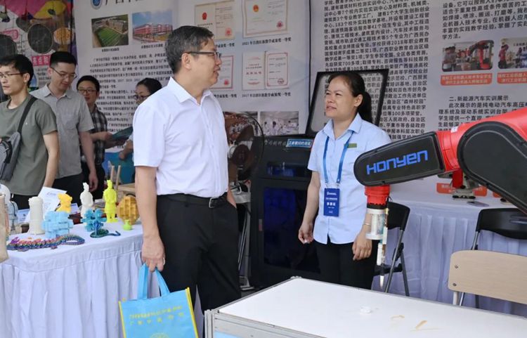 5月20日,學校在職業(yè)教育活動周活動展區(qū),精心布置展位,主要展示了工業(yè)機器人應用、新能源汽車實訓、3D打印、工程測量等方面的特色辦學成果。