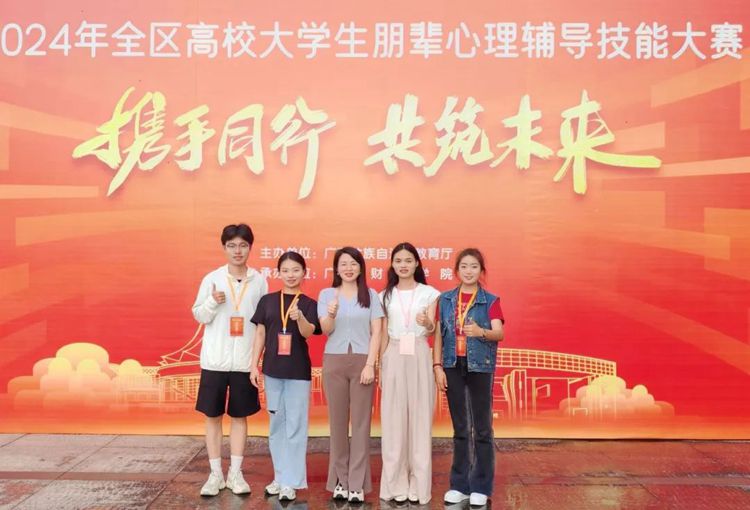 5月25—26日,由自治區(qū)教育廳主辦的2024年全區(qū)高校大學(xué)生朋輩心理輔導(dǎo)技能大賽決賽在廣西財(cái)經(jīng)學(xué)院相思湖校區(qū)舉行。我校參賽隊(duì)伍(隊(duì)員:張曼、胡成超、黃敏;指導(dǎo)老師:黃秋霞、李麗詩(shī)、凌艷婷)在決賽中表現(xiàn)優(yōu)異,榮獲三等獎(jiǎng)。
