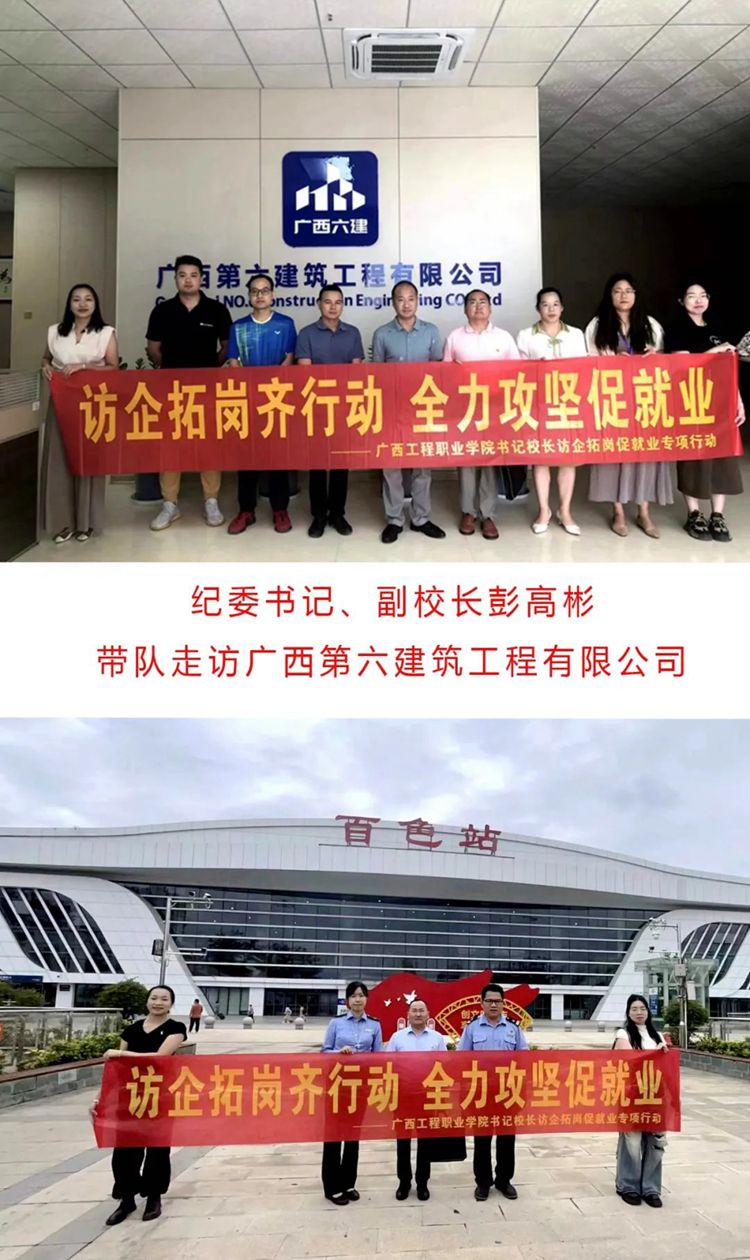 為深入開展高校書記校長訪企拓崗促就業(yè)專項行動,對接企業(yè)用人需求,拓寬畢業(yè)生就業(yè)渠道和資源,全力促進畢業(yè)生更加充分高質(zhì)量就業(yè),從2024年3月到5月,廣西工程職業(yè)學(xué)院黨委書記、督導(dǎo)專員蒙本曼,黨委副書記、校長羅艷妮帶隊深入兩廣100多家企業(yè)、高校和幼兒園進行訪企拓崗促就業(yè)行動。學(xué)校黨政領(lǐng)導(dǎo)班子成員、中層干部參加了此次專項行動。