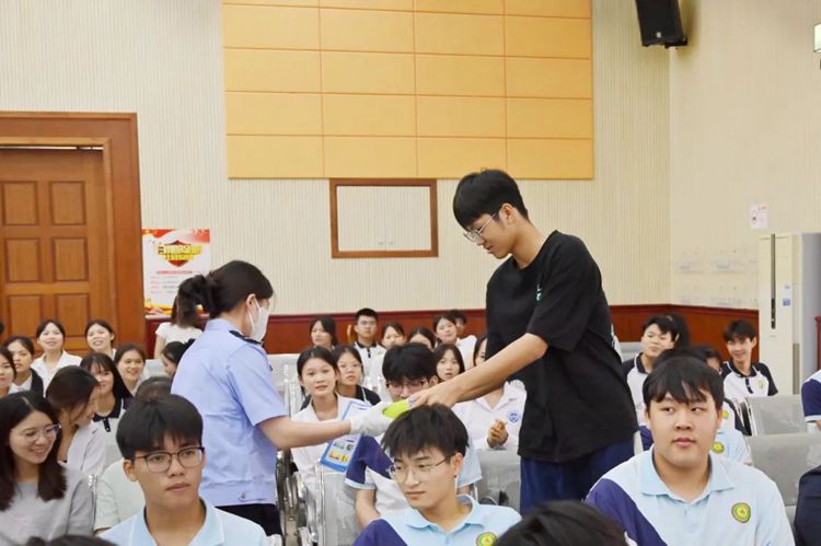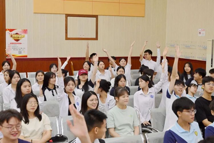 講座上,還設置了禁毒普法有獎問答互動環(huán)節(jié),學生們積極舉手回答問題,現(xiàn)場氣氛活躍熱烈。