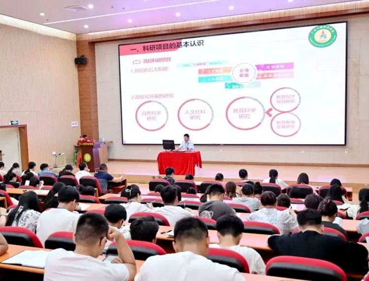 為進(jìn)一步提升學(xué)校教師的教學(xué)科研能力、提高教師申報(bào)科研項(xiàng)目的積極性和效率,6月18日下午,學(xué)校在圖文信息大樓一樓報(bào)告廳舉辦教科研能力提升系列培訓(xùn)之“科學(xué)研究項(xiàng)目選題”專項(xiàng)培訓(xùn)。此次培訓(xùn)為學(xué)校2024年春季學(xué)期教師常規(guī)培訓(xùn)第九期,科研處藍(lán)桂敏副主任作《科學(xué)研究項(xiàng)目選題要略》專題培訓(xùn),全體教職工參加了培訓(xùn)。