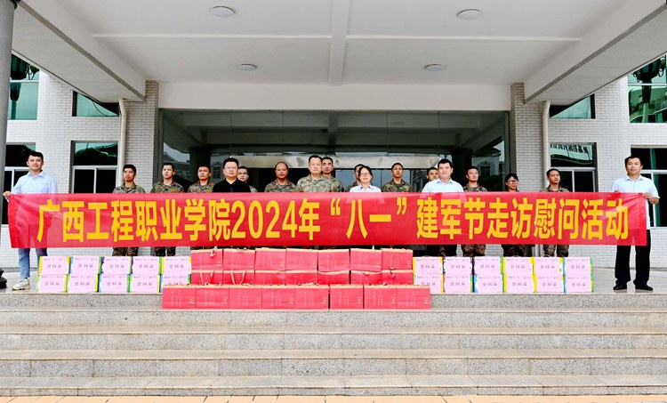為慶祝中國(guó)人民解放軍建軍97周年,進(jìn)一步弘揚(yáng)學(xué)校擁軍優(yōu)屬、擁政愛(ài)民的光榮傳統(tǒng),7月31日,廣西工程職業(yè)學(xué)院前往平果市人民武裝部開(kāi)展“八一”建軍節(jié)走訪慰問(wèn)活動(dòng)。學(xué)校黨委委員、黨委宣傳部部長(zhǎng)黃麗娟,法務(wù)部部長(zhǎng)盧保日,學(xué)生工作處副處長(zhǎng)李麗詩(shī),招生就業(yè)處副處長(zhǎng)岑易精,基建處科長(zhǎng)馮寧及征兵工作站負(fù)責(zé)人陳國(guó)昇等代表學(xué)校師生向人民子弟兵致以親切慰問(wèn)和節(jié)日祝福,并贈(zèng)送慰問(wèn)品。