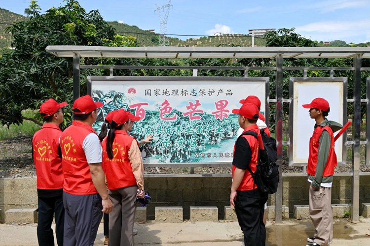 “青年先鋒隊(duì),基層實(shí)踐行”服務(wù)團(tuán)走進(jìn)那朗芒果園、百冠芒果加工廠開展助力鄉(xiāng)村振興志愿服務(wù)活動(dòng),與果農(nóng)、工作人員了解田東縣芒果的種植、銷售、產(chǎn)業(yè)鏈等情況。