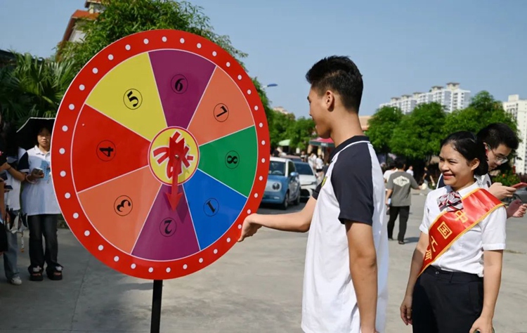 揭牌儀式后,現(xiàn)場(chǎng)開(kāi)展反詐知識(shí)宣傳和舉行“反詐大轉(zhuǎn)盤(pán)”“玩套圈、防圈套”“反詐知多少”“反詐主題版”等反詐小游戲,參與游戲的師生每人領(lǐng)取一張集印章反詐宣傳小卡片,每完成一項(xiàng)游戲可集一個(gè)印章,集滿印章即可用小卡換取一份禮品?;顒?dòng)把反詐知識(shí)與互動(dòng)游戲相結(jié)合起來(lái),吸引眾多師生參與。